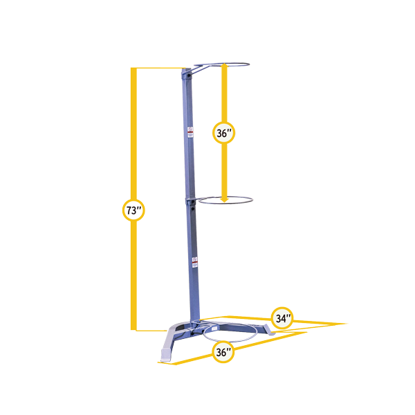 Assembled Measurements: 73"H x 36"W x 34"D. Space between rings is 36".