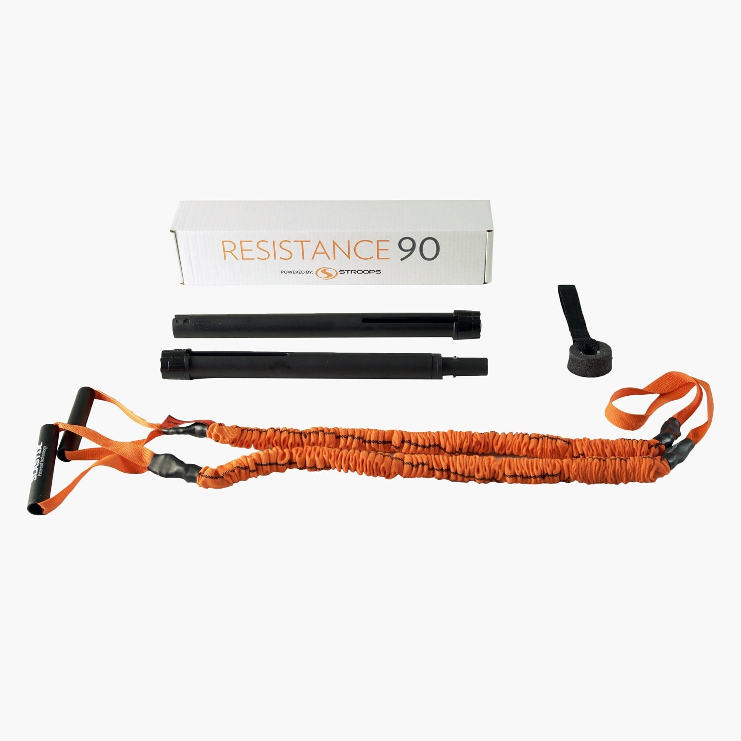 The Resistance 90 is a portable resistance training system. You can choose to use the Slastix resistance band with the collapsible bar or by itself. The Resistance 90 also comes with a foam door anchor so you can easily workout in your home. The collapsible bar makes the Resistance 90 perfect on-the-go fitness. Get a full body workout when and where you want, with the Resistance 90. CONTENTS: Dual Handle Slastix Resistance Band, Collapsible Bar, Foam Door Anchor, Exercise Poster.